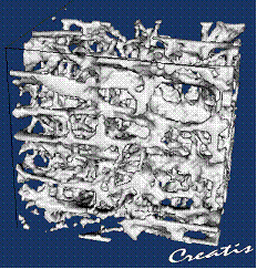 Two acquisitions of the same human calcaneum bone sample were made: by high resolution IRM and by synchrotron radiation (ESRF). MRI produces images with a resolution of 80 microns whereas synchrotron provides a resolution of 10 microns with a very high signal to noise rate. The ESRF image was under-sampled in order to work at the same spatial resolution as the MRI image.
