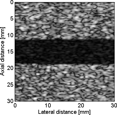 Let us note that the amplitude between moving and stationary scatterers (inside and outside the vessel) is tunable and so the vessel can appear more or less dark.