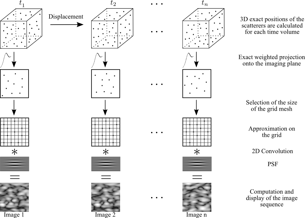 - and finally the RF image is formed from the numerical convolution between weighted nodes of the grid and the PSF