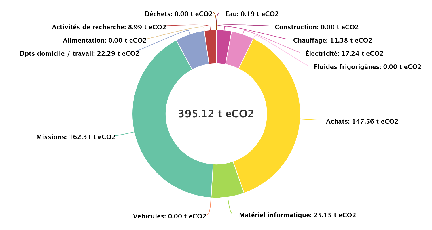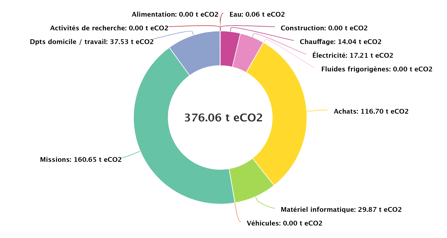 Il s'agit du premier bilan carbone global réalisé pour CREATIS, qui permet d'avoir les ordres de grandeur des différents postes d'émission. En particulier, il a permis d'établir que le principal poste qui permettrait de produire une baisse est celui des missions. Ainsi, il a été décidé de mettre en place un quota individuel sur les missions en 2024 et 2025.